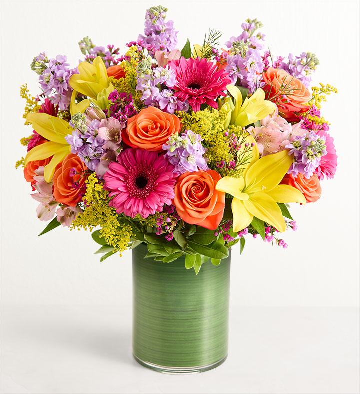 NEW This luxe arrangement is a celebration of color, form, and vibrancy. Roses, lilies, and more spectacular blooms deliver joyful elegance for any occasion—or no occasion at all.